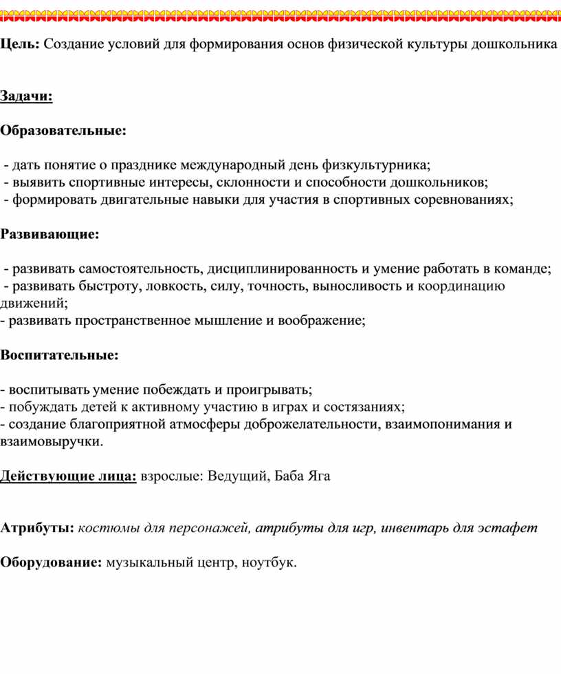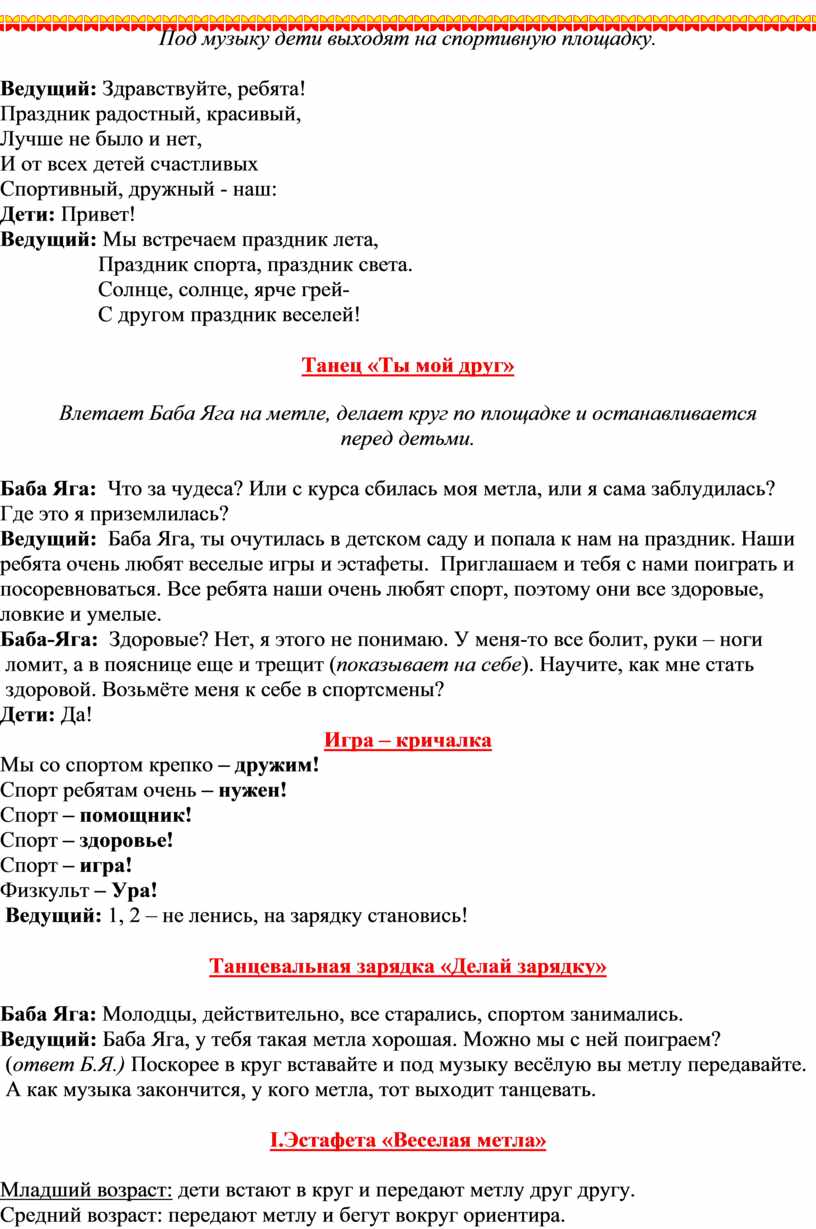 Действующие лица: взрослые: Ведущий, Баба Яга