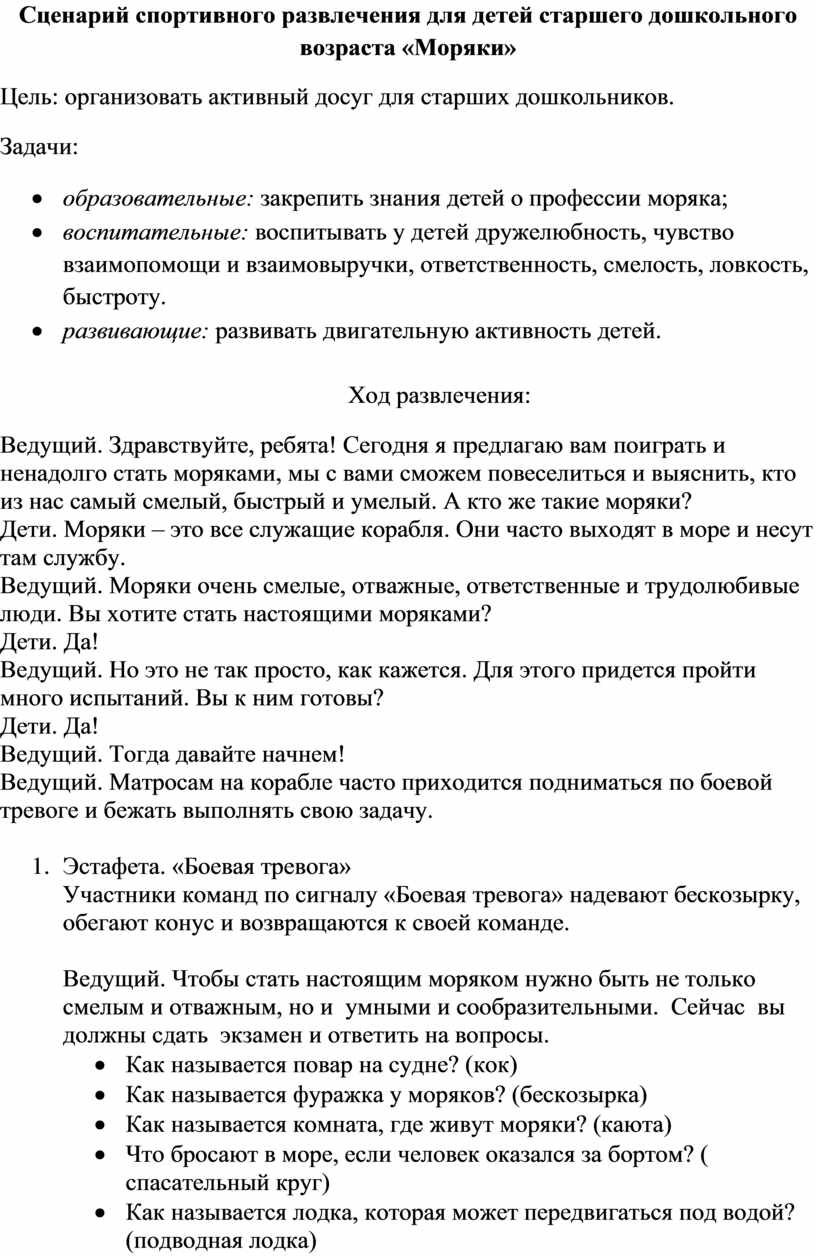 Сценарий спортивного развлечения для детей старшего дошкольного возраста «Моряки»