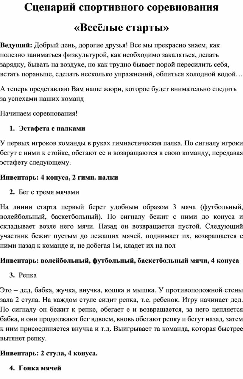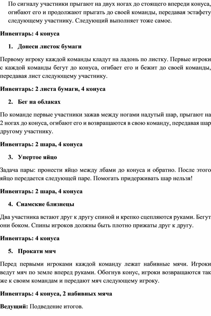 Инвентарь: 4 конуса, 2 скакалки, 2 мяча