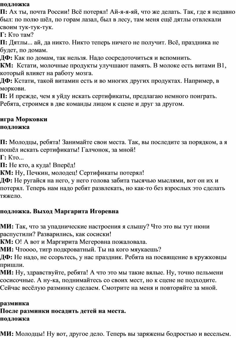 ДФ: Не надо, не ссорьтесь, у нас праздник. Ребята на посвящение в кружковцы пришли.