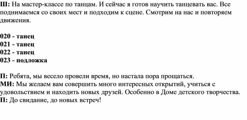 Ш: На мастер-классе по танцам. И сейчас я готов научить танцевать вас. Все поднимаемся со своих мест и подходим к сцене. Смотрим на нас и повторяем движения.