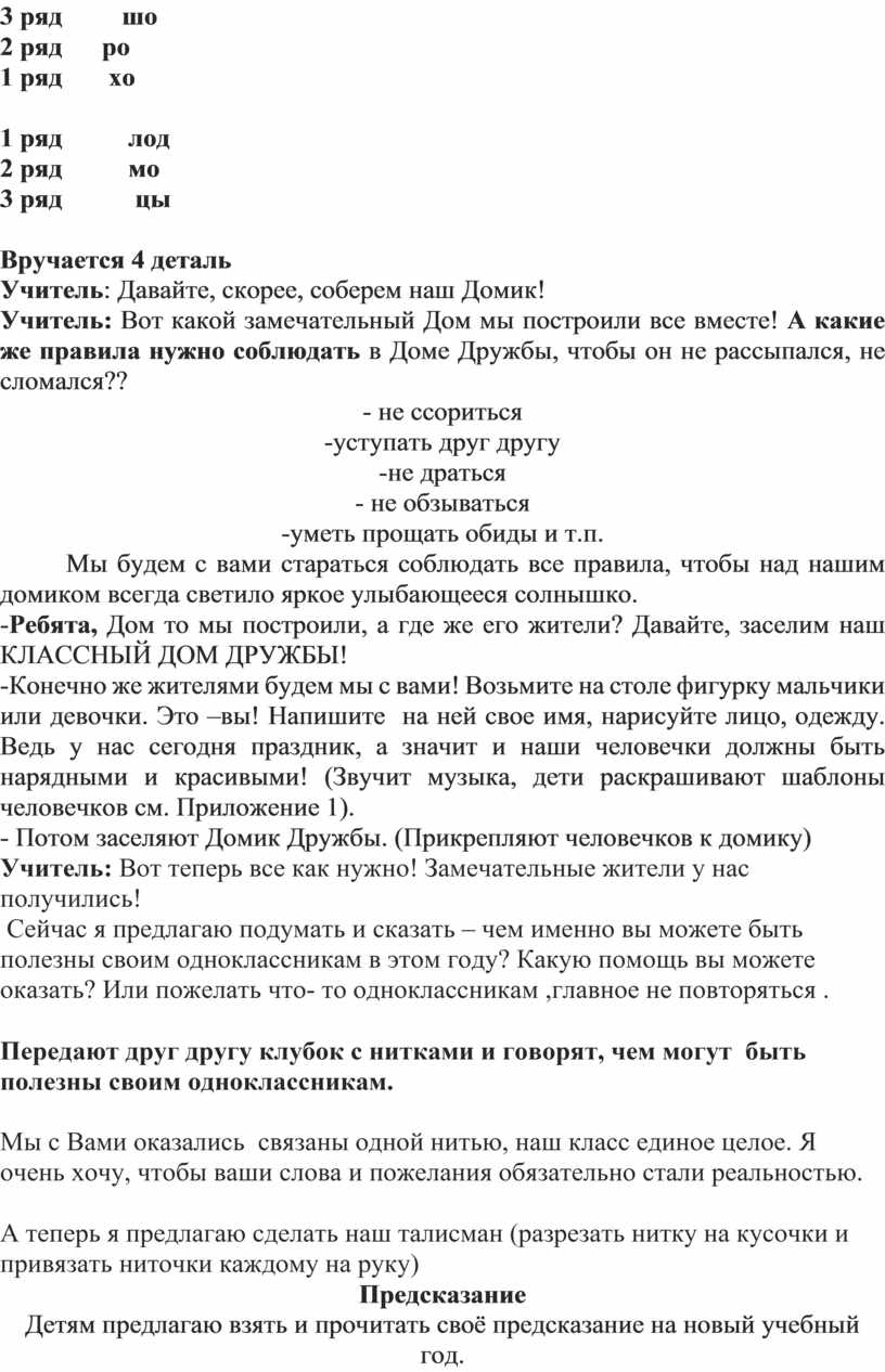 Учитель: Ребята, а нам в классе пригодился бы такой дом? Почему вы так решили? (Если, мы будем дружными, то учиться нам будет вместе интереснее. И со школьными трудностями справиться вместе, будет легче).