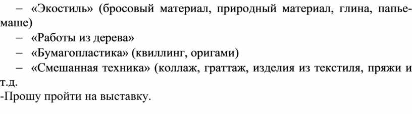 - «Смешанная техника» (коллаж, граттаж, изделия из текстиля, пряжи и т.д.