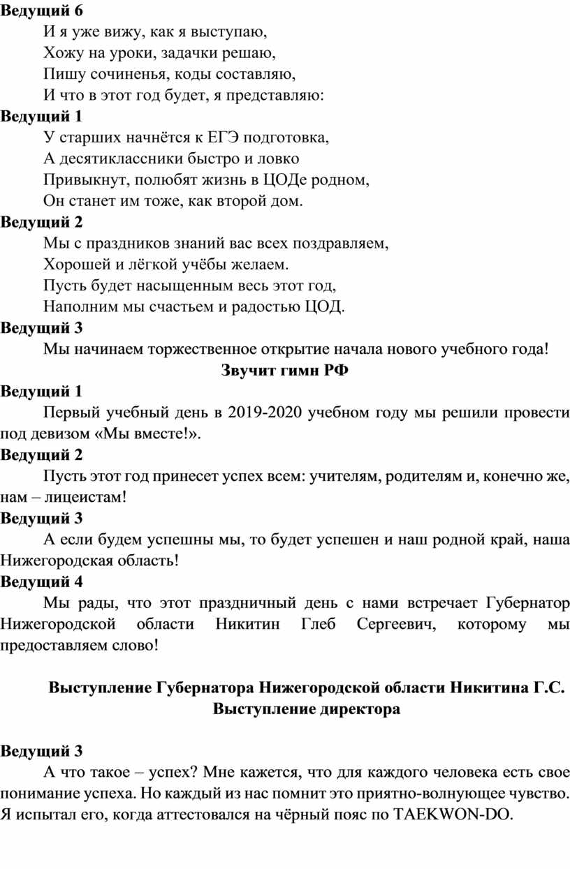 Уважаемые лицеисты! Приветствуем губернатора Нижегородской области Никитина Глеба Сергеевича!