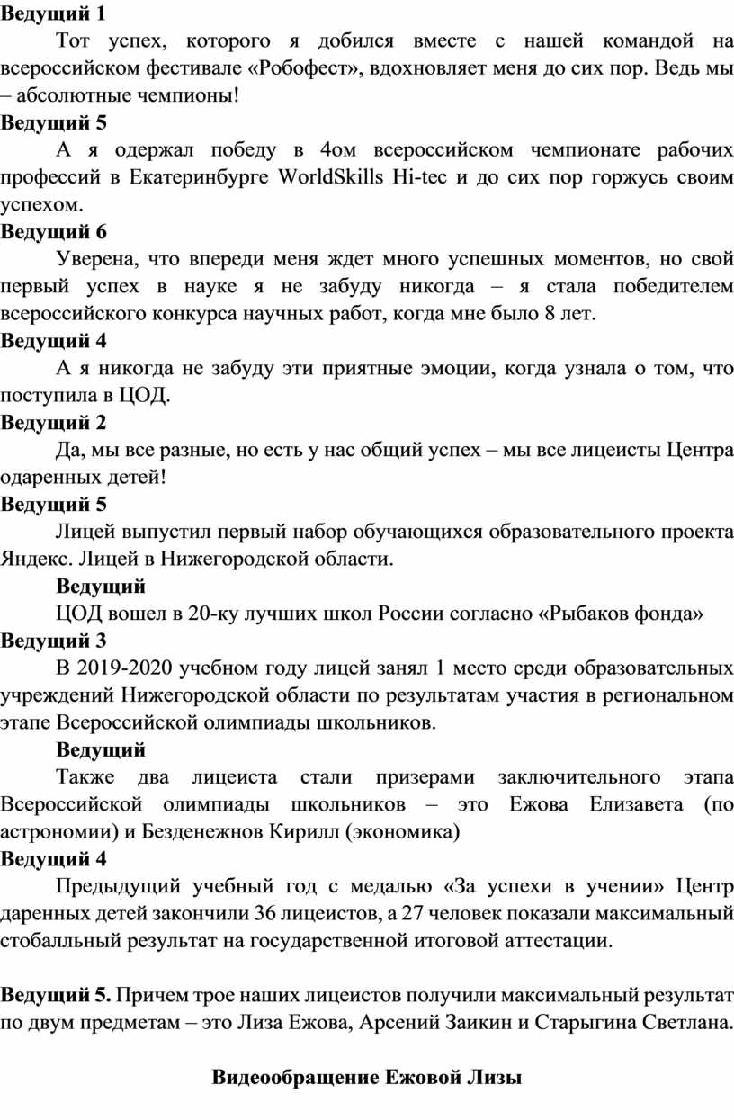 Ведущий 5. Причем трое наших лицеистов получили максимальный результат по двум предметам – это Лиза Ежова, Арсений Заикин и Старыгина Светлана.
