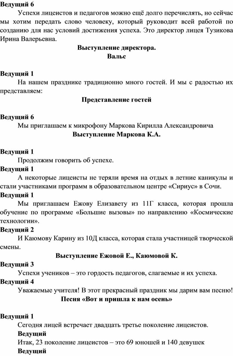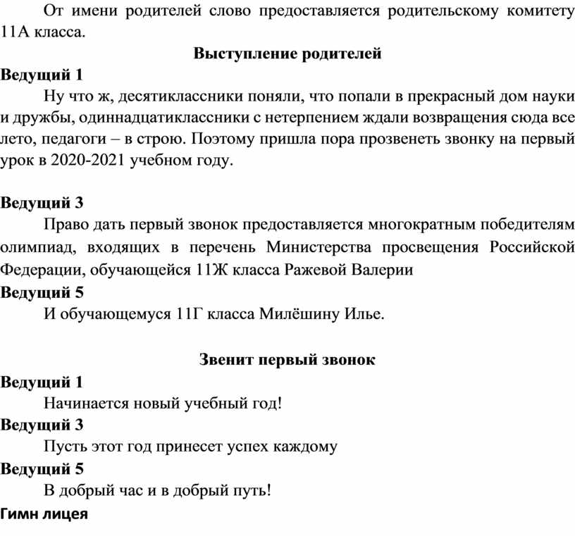 Доброе утро, лицей! Здравствуйте, дорогие лицеисты, уважаемые учителя, родители и все те, кто пришел разделить с нами радость первого учебного дня!
