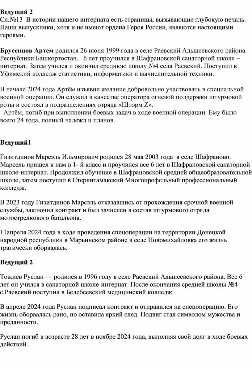 Сл.№13 В истории нашего интерната есть страницы, вызывающие глубокую печаль. Наши выпускники, хотя и не имеют ордена Героя России, являются настоящими героями.