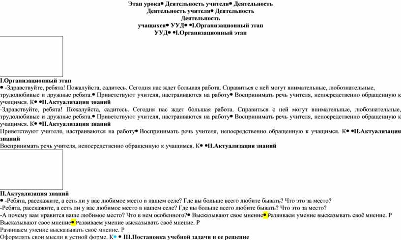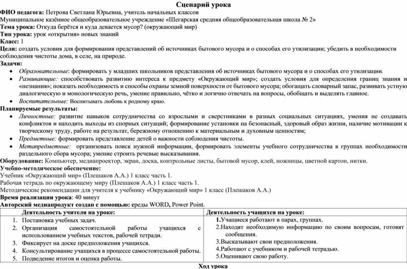 Сценарий урока