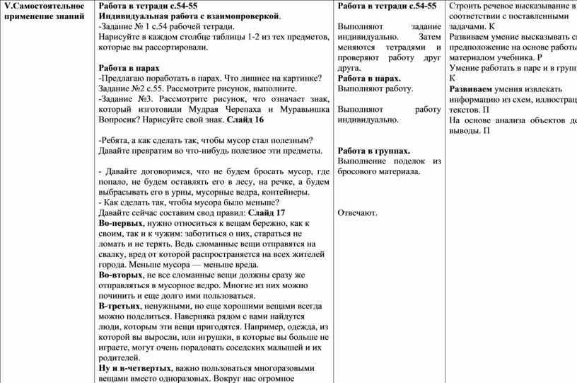Строить речевое высказывание в соответствии с поставленными задачами. К Развиваем умение высказывать своё предположение на основе работы с материалом учебника. Р Умение работать в паре и в группах. К Развиваем умения извлекать информацию из схем, иллюстраций, текстов. П На основе анализа объектов делать выводы. П |