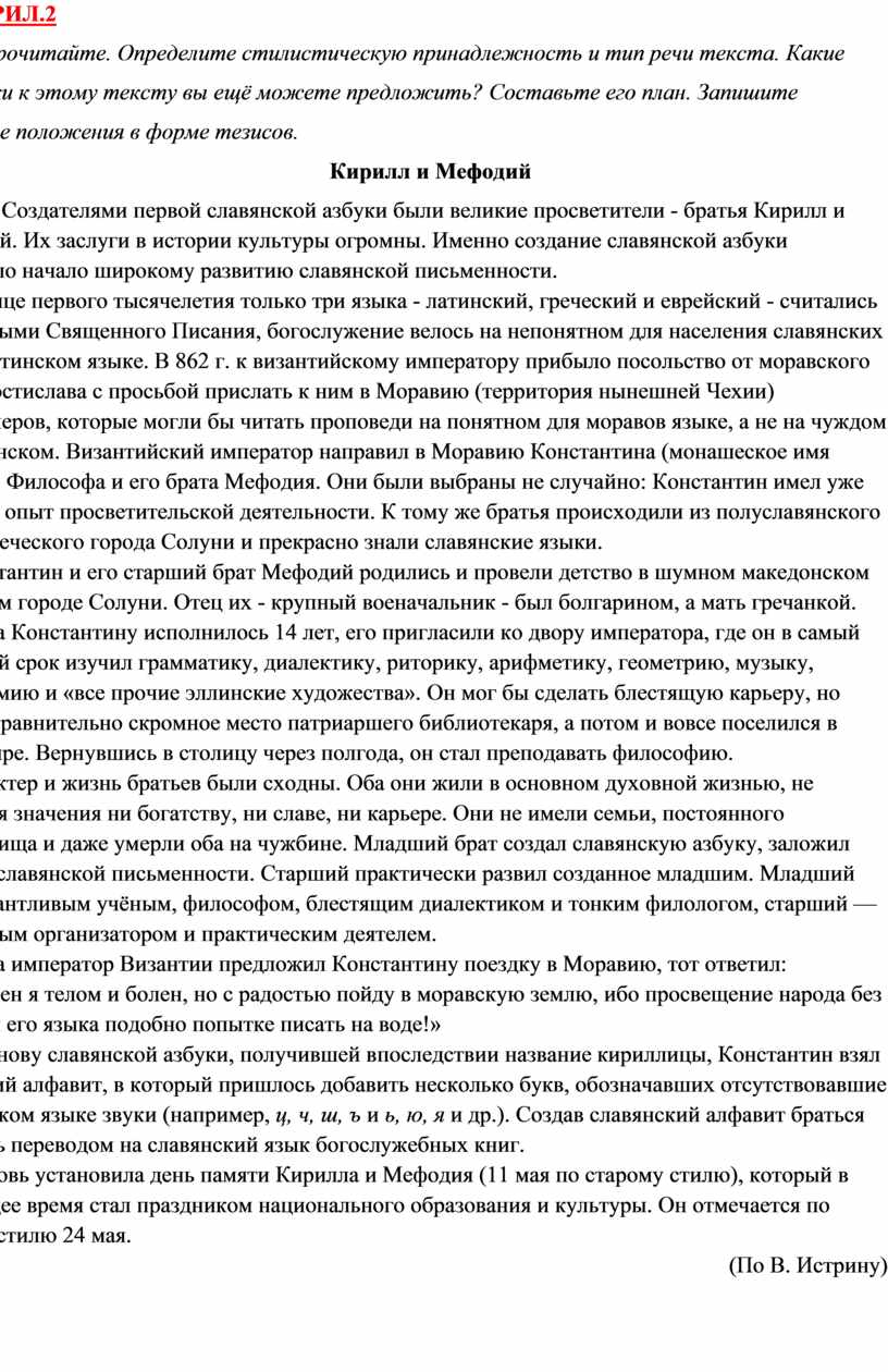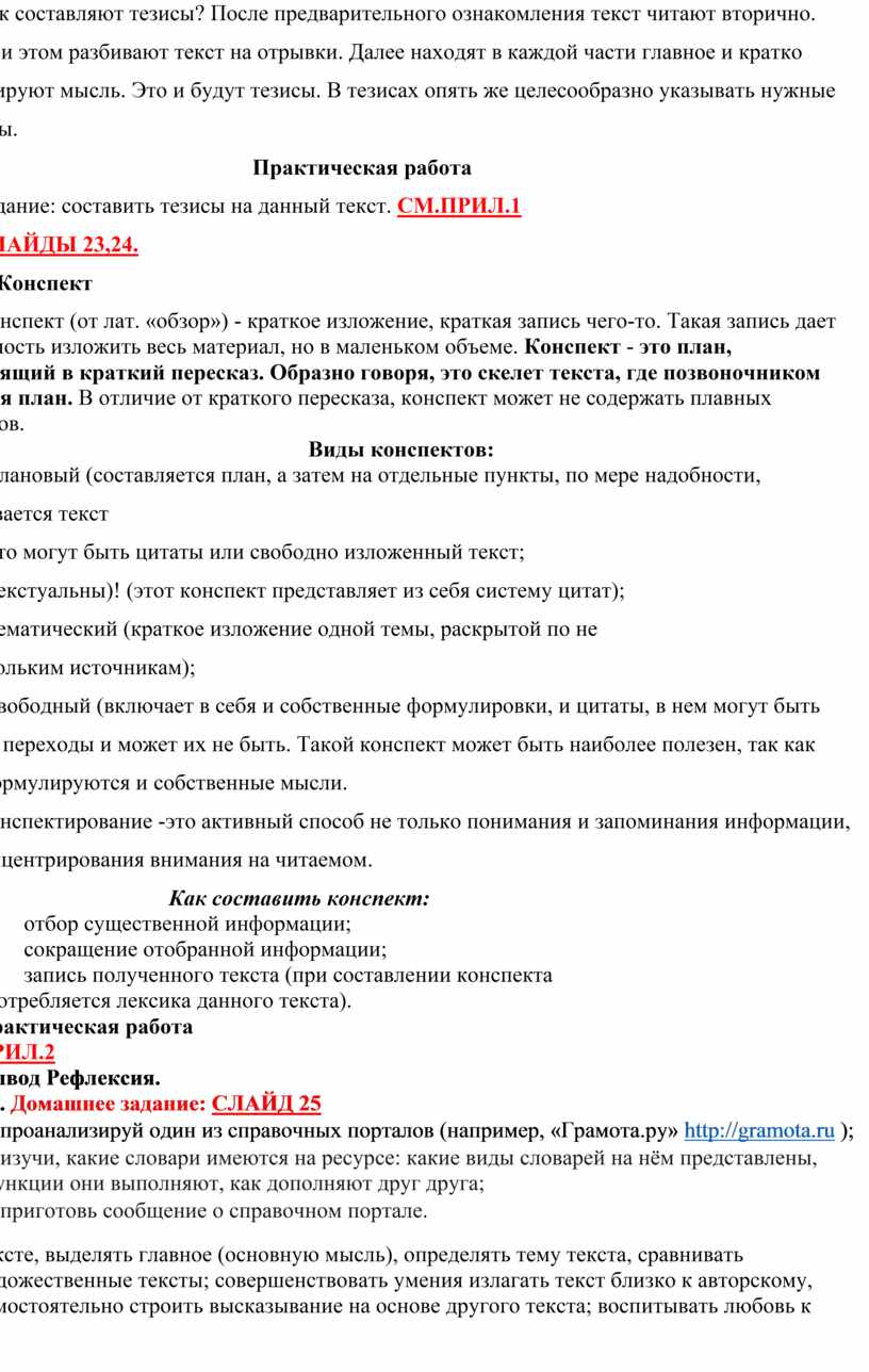 Задание: составить тезисы на данный текст. СМ.ПРИЛ.1