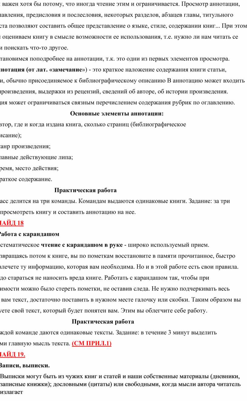 Рассмотрим некоторые рациональные приемы работы с книгой.