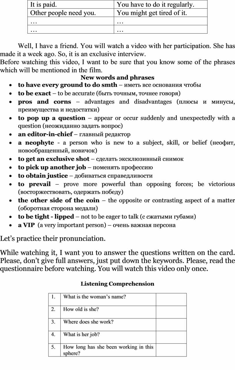 Цель: формировать навыки говорения; развивать умения читать и воспринимать информацию на слух с общим и детальными пониманием услышанного; воспитание уважительного отношения к различным видам профессий