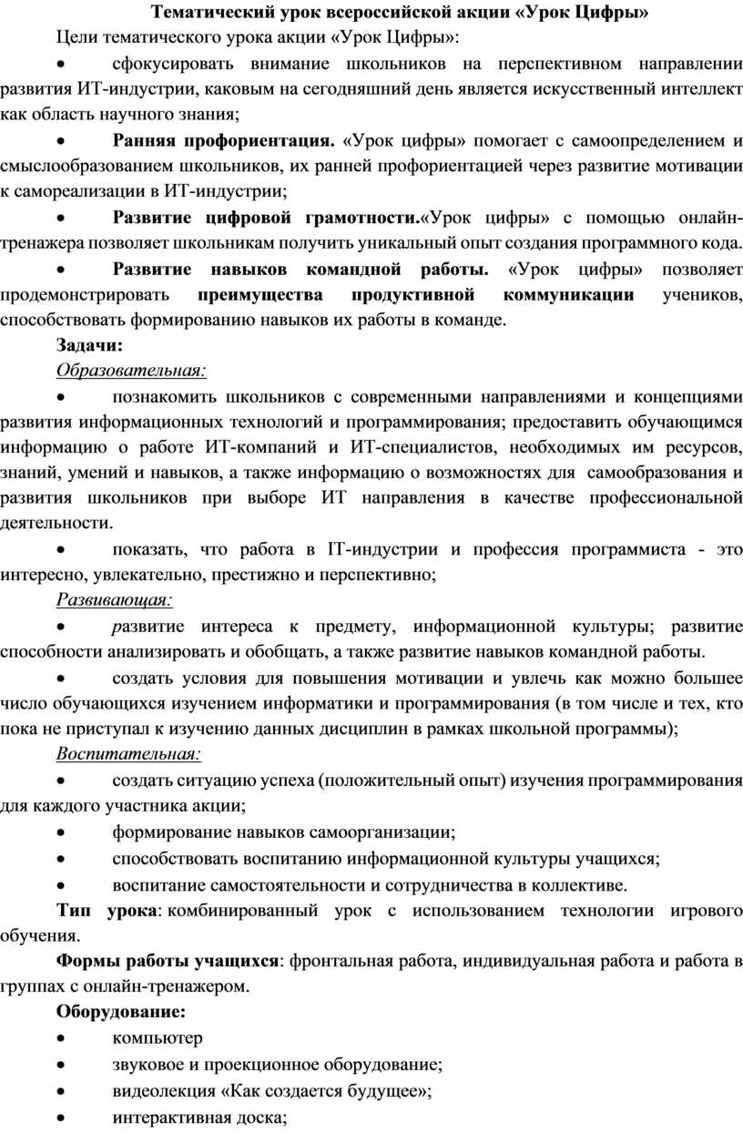 Тематический урок всероссийской акции «Урок Цифры»