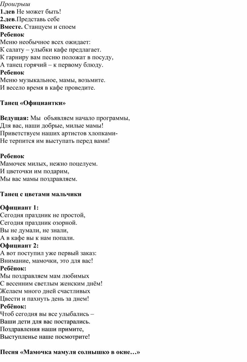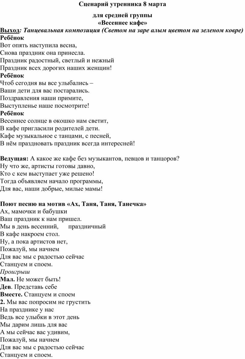 Сценарий утренника 8 марта