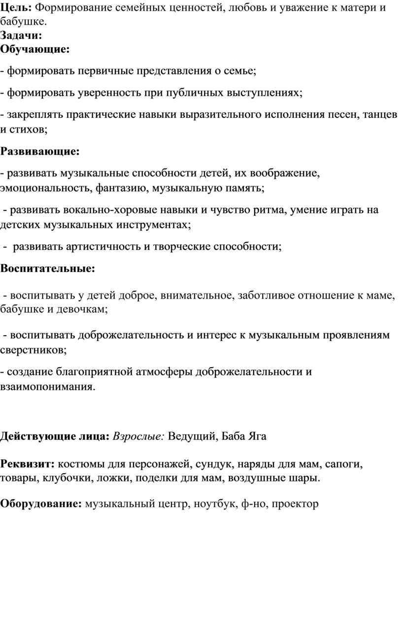семейных ценностей, любовь и уважение к матери и бабушке.