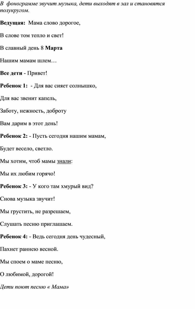Ребенок 2: - Пусть сегодня нашим мамам,