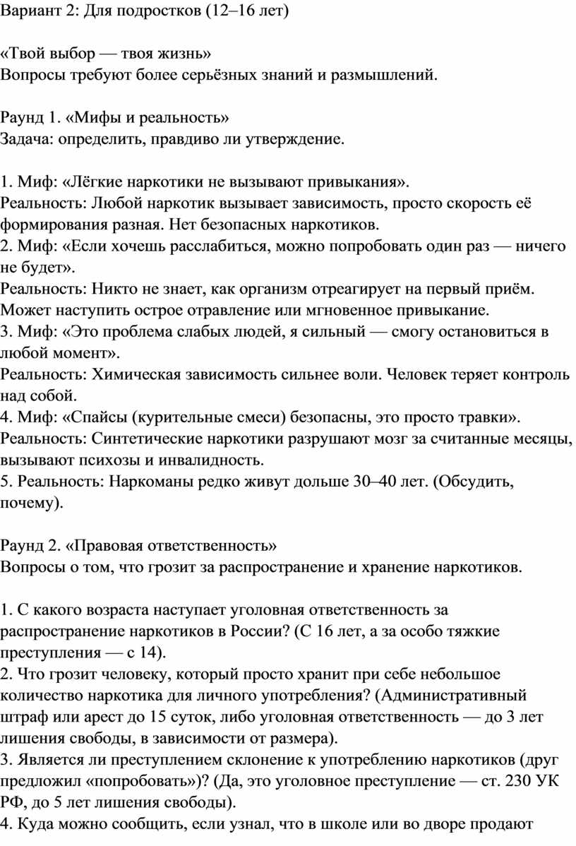 5. Реальность: Наркоманы редко живут дольше 30–40 лет. (Обсудить, почему).