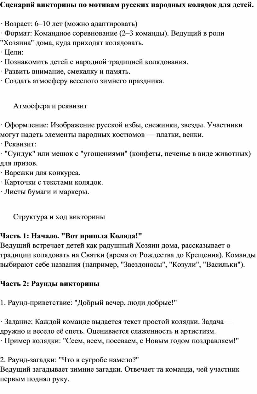 колядовать на Святки (время от Рождества до Крещения). Команды выбирают себе