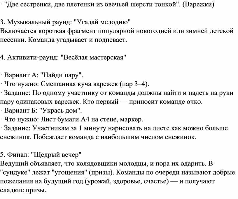 · Задание: Каждой команде выдается текст простой колядки. Задача — дружно и