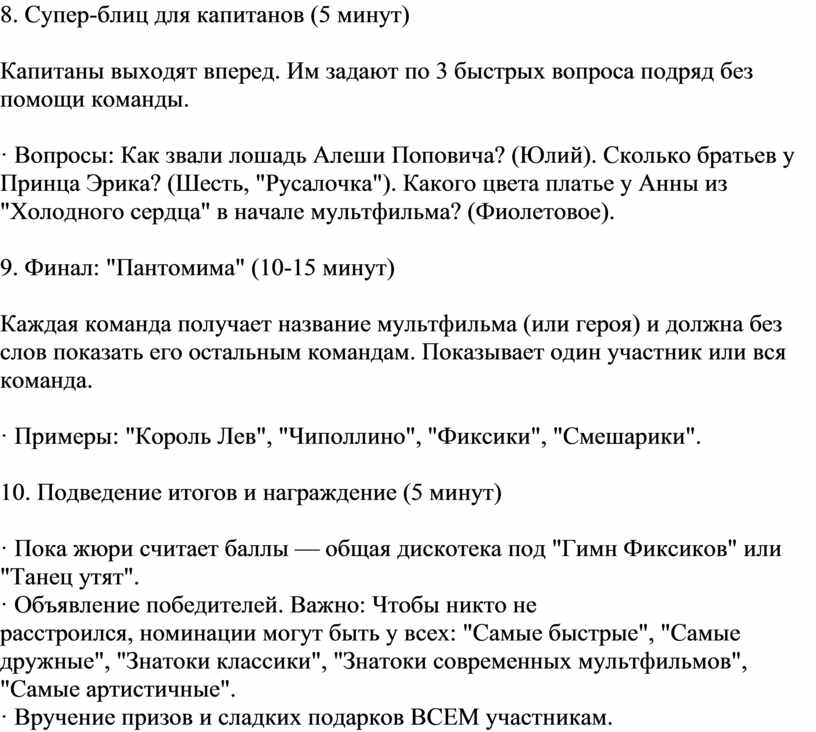 или кусочек героя). Команда должна угадать, что это за мультфильм. Можно