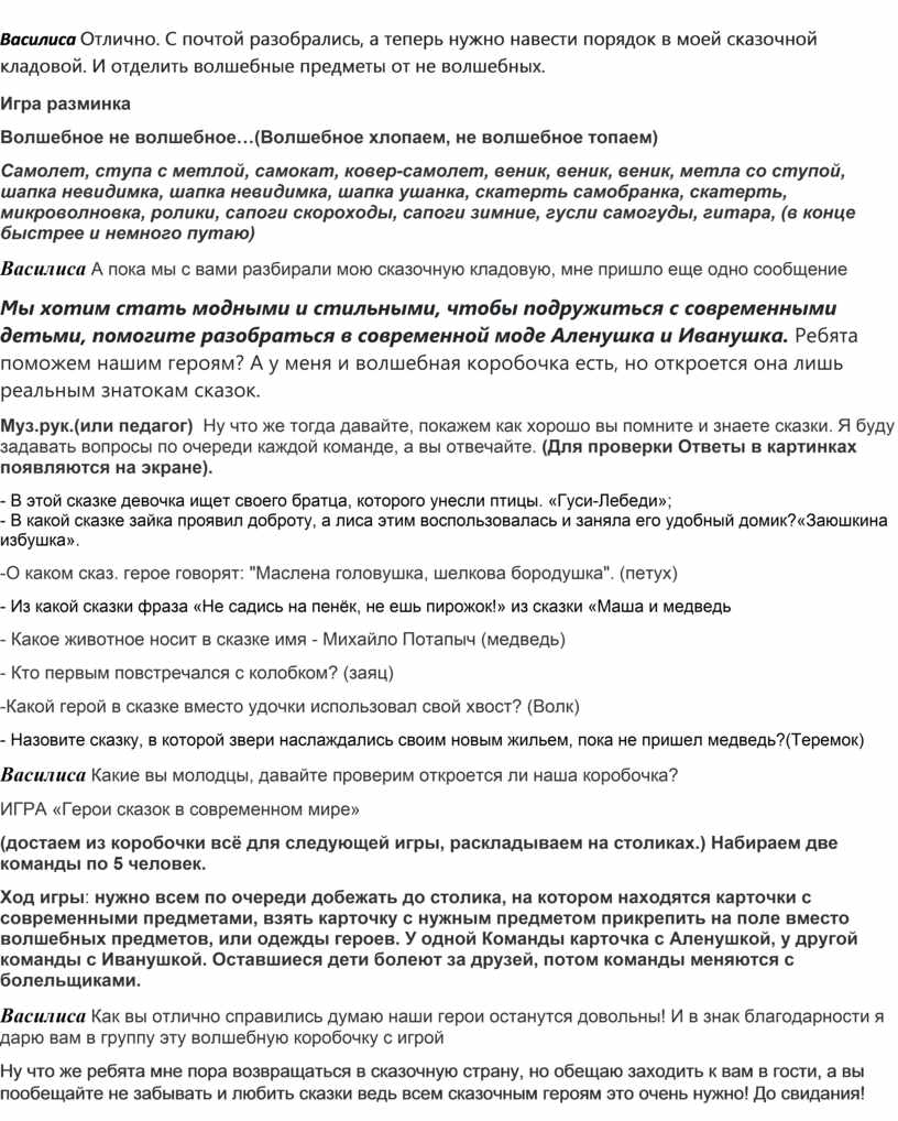 ИГРА «Герои сказок в современном мире»
