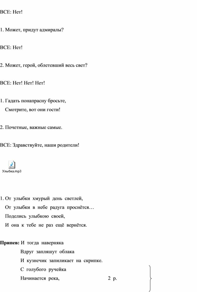 1. От улыбки хмурый день светлей,