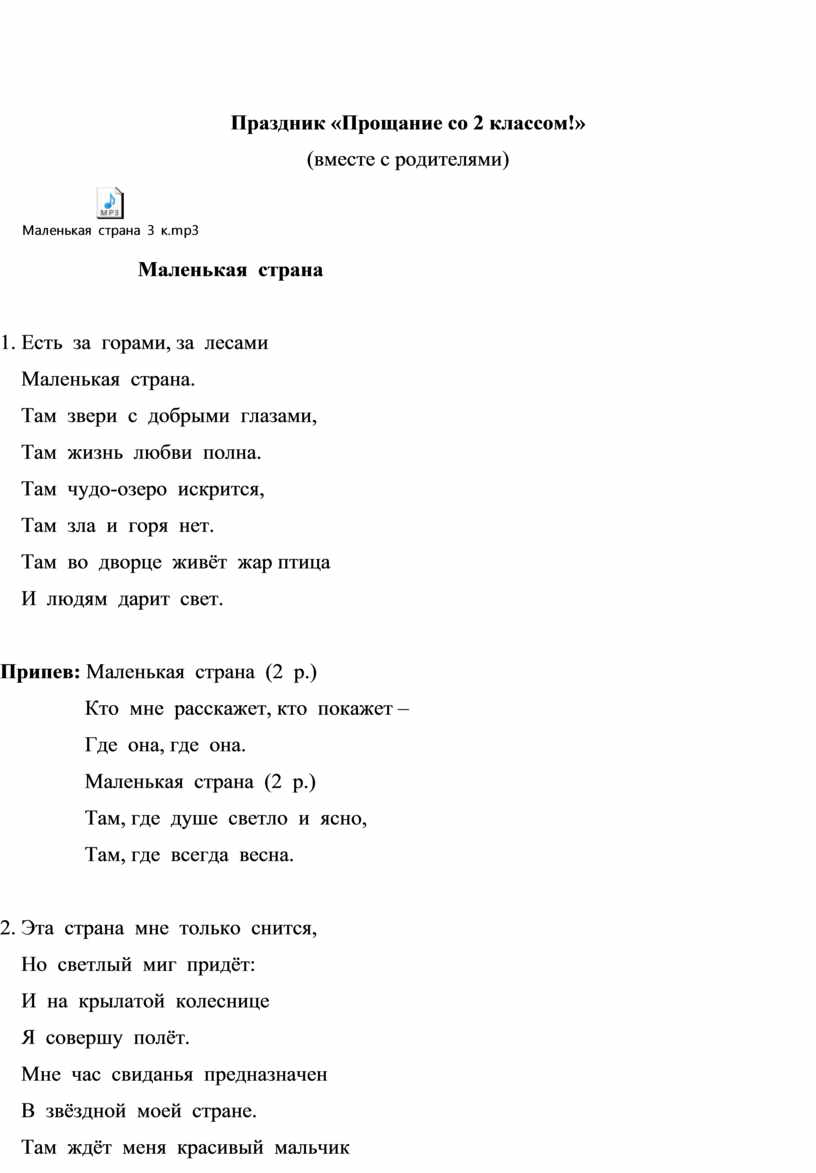 Припев: Маленькая страна (2 р.)