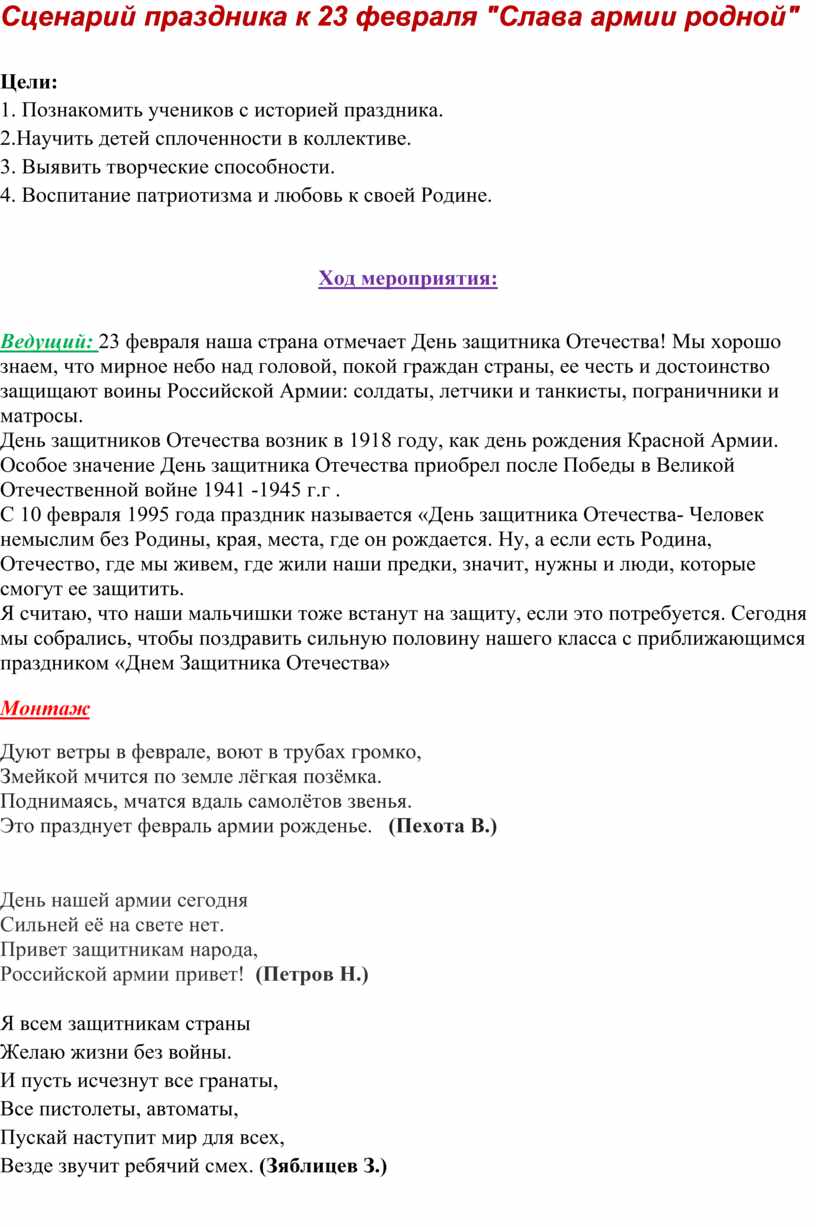 Сценарий праздника к 23 февраля "Слава армии родной"