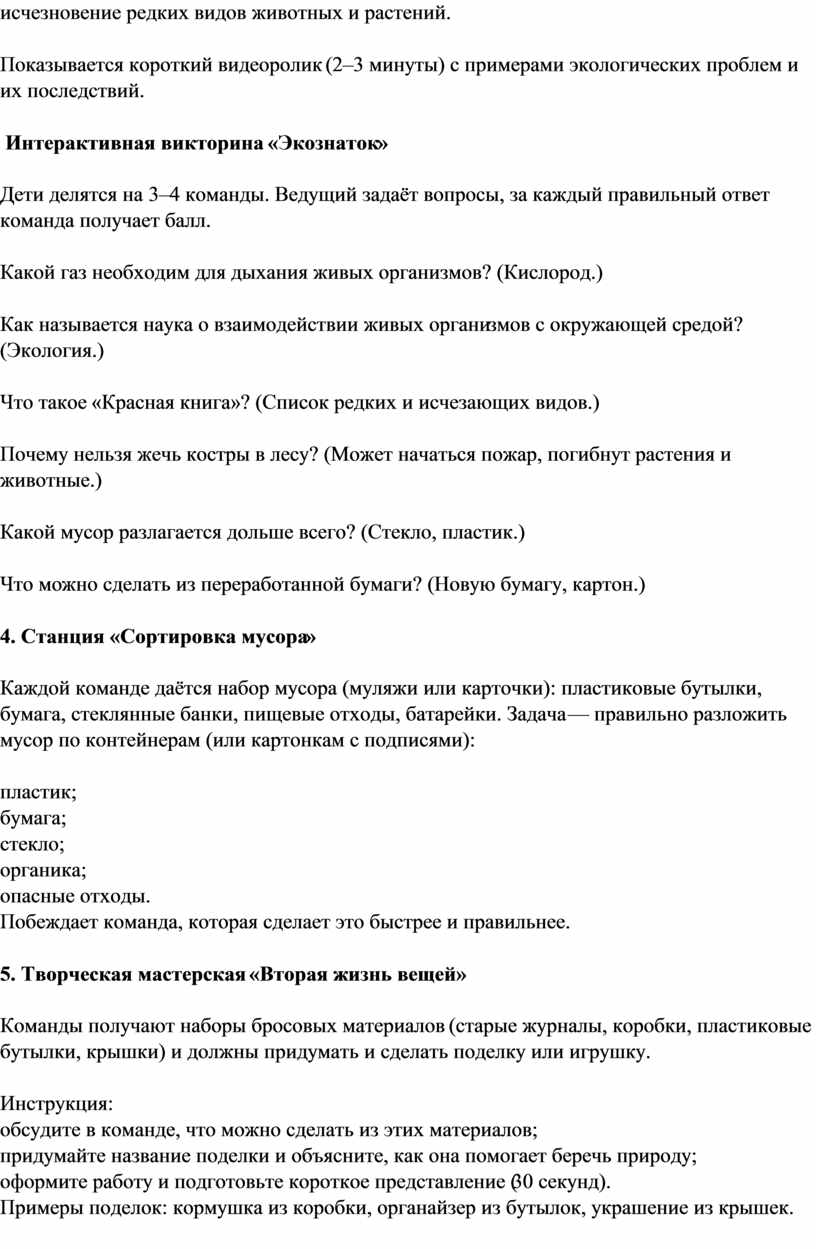 Показывается короткий видеоролик (2–3 минуты) с примерами экологических проблем