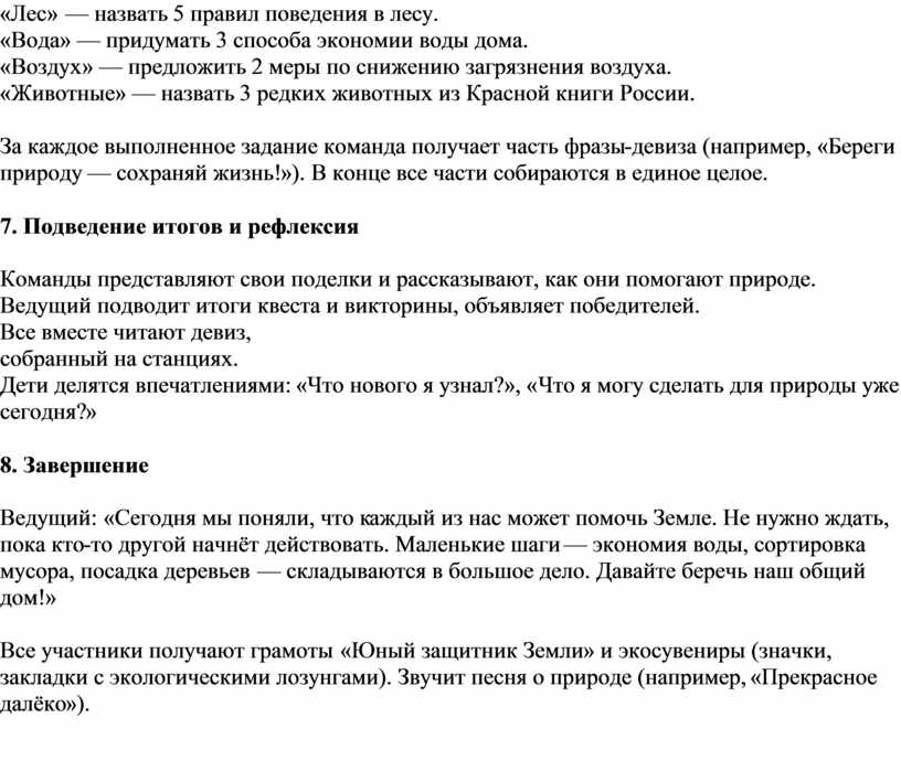 Ведущий: «Сегодня мы поняли, что каждый из нас может помочь Земле. Не нужно