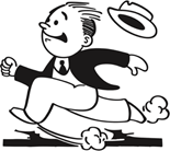 Идея для картинки: Человек бежит так быстро, что его волосы развеваются на ветру, а вокруг него летают птички или листья, чтобы подчеркнуть скорость.