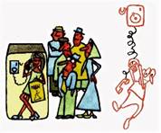 Ребёнок лежит на диване, смотрит мультики, а вокруг него разбросаны игрушки. На заднем фоне можно изобразить деревянные чурбаны (баклуши), которые никто не бьёт.