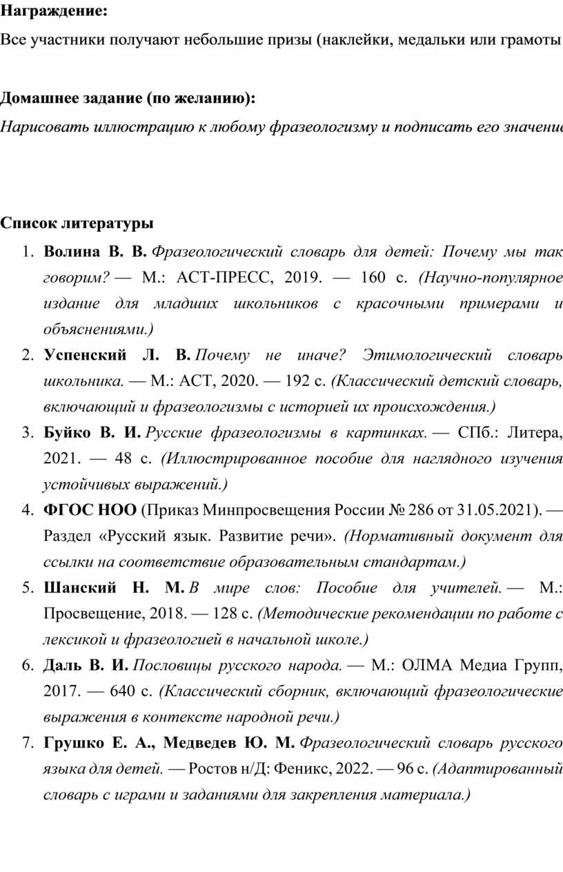 7. Грушко Е. А., Медведев Ю. М. Фразеологический словарь русского языка для детей. — Ростов н/Д: Феникс, 2022. — 96 с. (Адаптированный словарь с играми и заданиями для закрепления материала.)