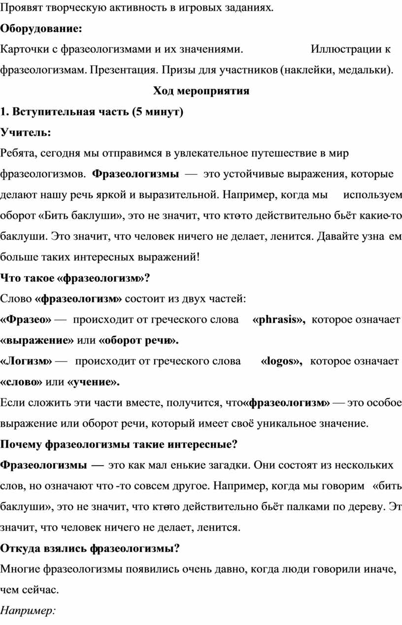 Обучающиеся узнают новые фразеологизмы, их значения и уместное употребление.