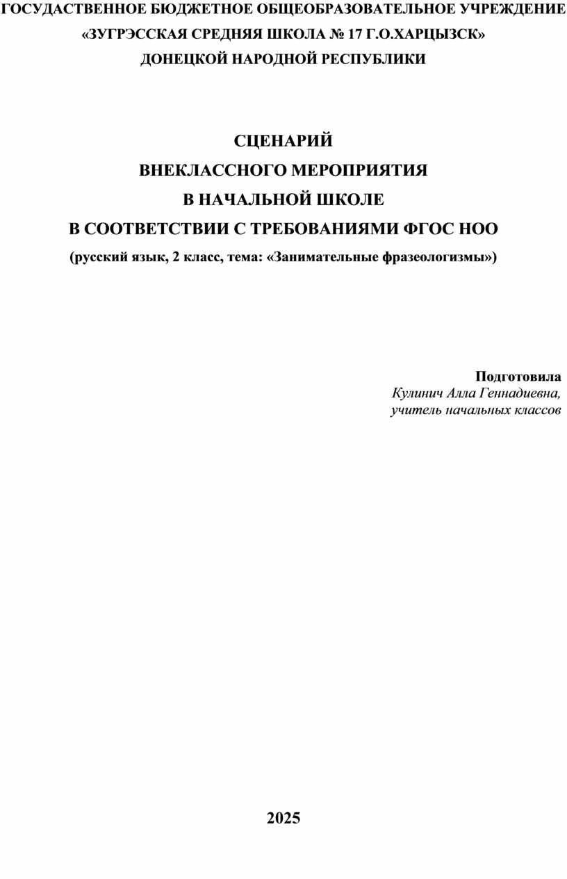«ЗУГРЭССКАЯ СРЕДНЯЯ ШКОЛА № 17 Г.О.ХАРЦЫЗСК»