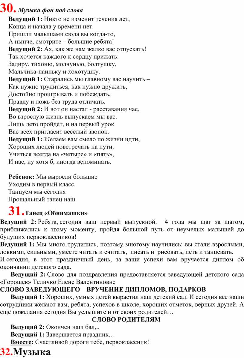 Ведущий 2: Слово для поздравления предоставляется заведующей детского сада «Горошек» Теличко Елене Валентиновне