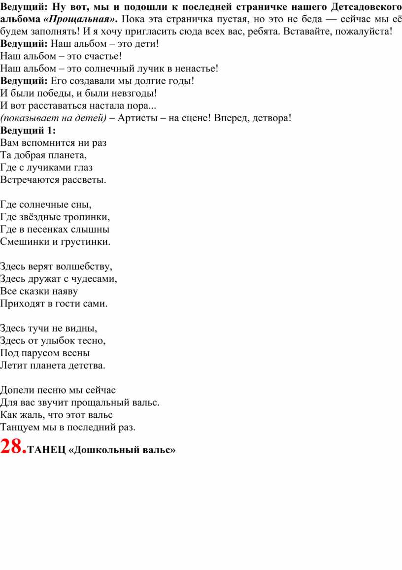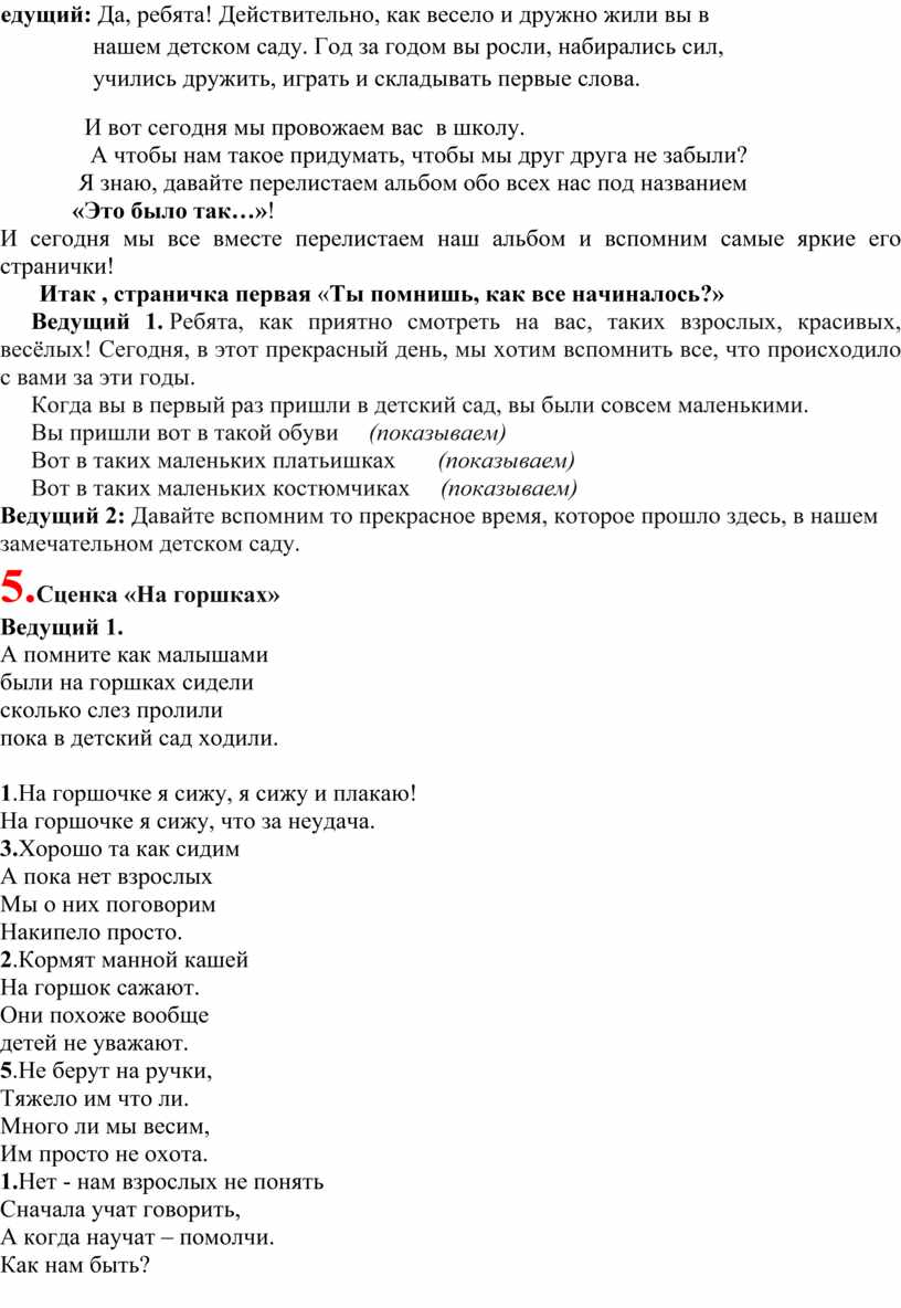 Ведущий 2: Давайте вспомним то прекрасное время, которое прошло здесь, в нашем замечательном детском саду.