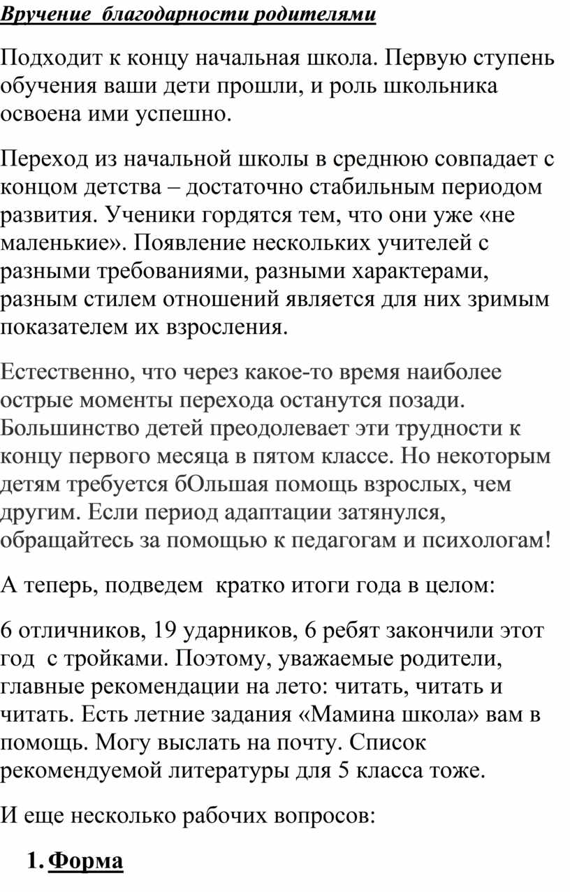 Мне бы хотелось, чтобы вы всегда помнили эти первые четыре года в школе, когда вы подружились, когда вы взрослели и умнели. Вы будете становиться старше, но пусть всегда в вас живёт частица детства и пусть ваше будущее будет светлым и чистым.