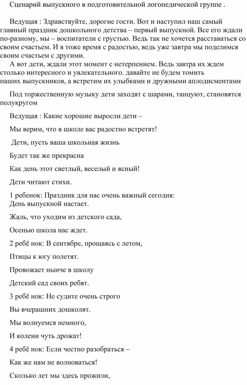 Сценарий выпускного в подготовительной логопедической группе .