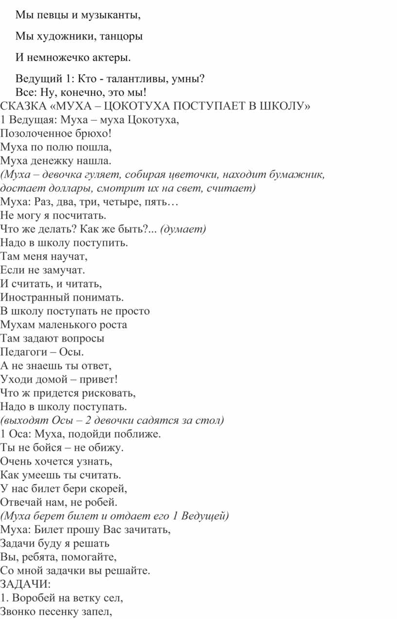СКАЗКА «МУХА – ЦОКОТУХА ПОСТУПАЕТ В ШКОЛУ»
