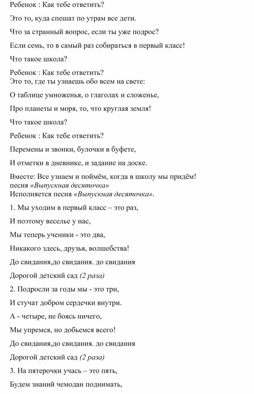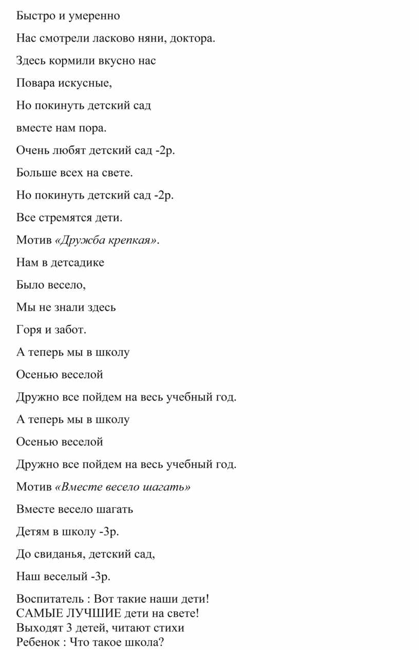 Девочка: Я не пойму, чему ты рад, что покидаешь детский сад?