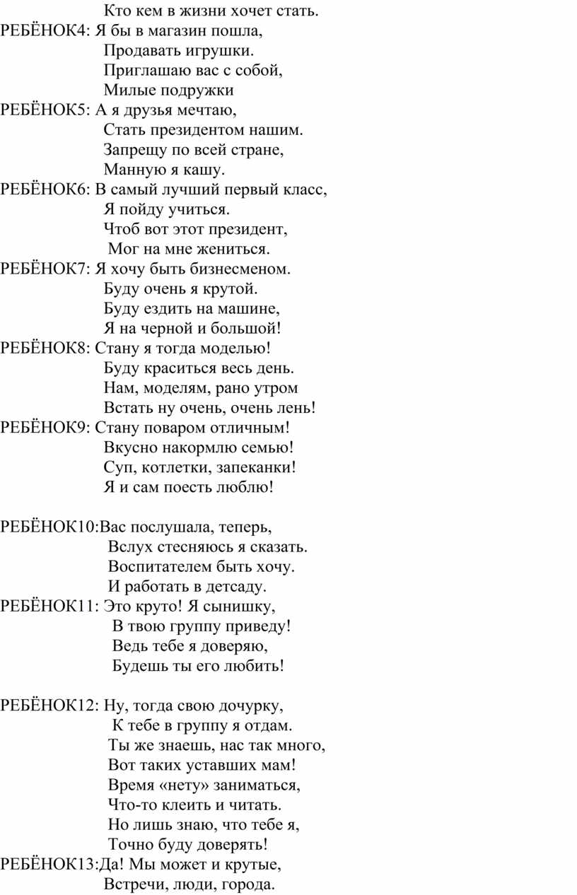 Ребенок: Чтоб нам вырасти такими, а мы – ребята высший класс!