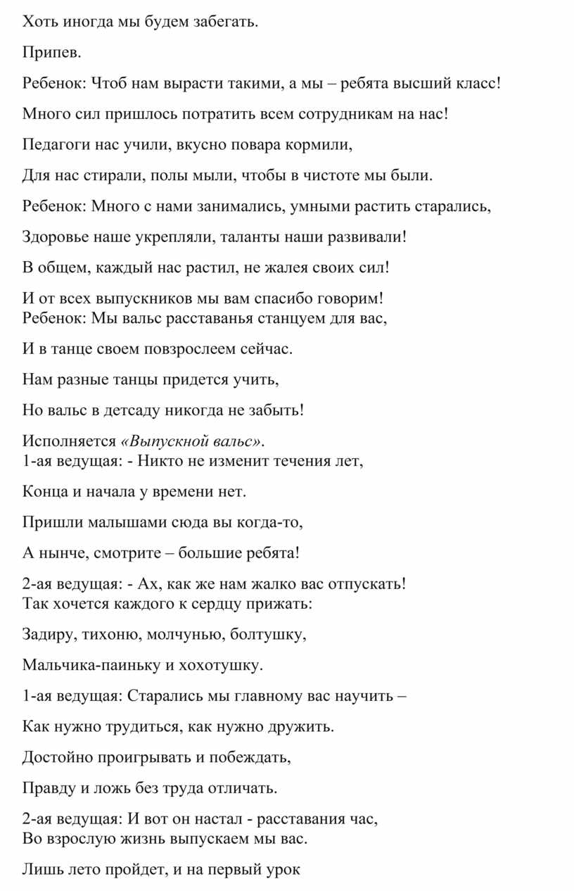 Ребенок: Мы вальс расставанья станцуем для вас,