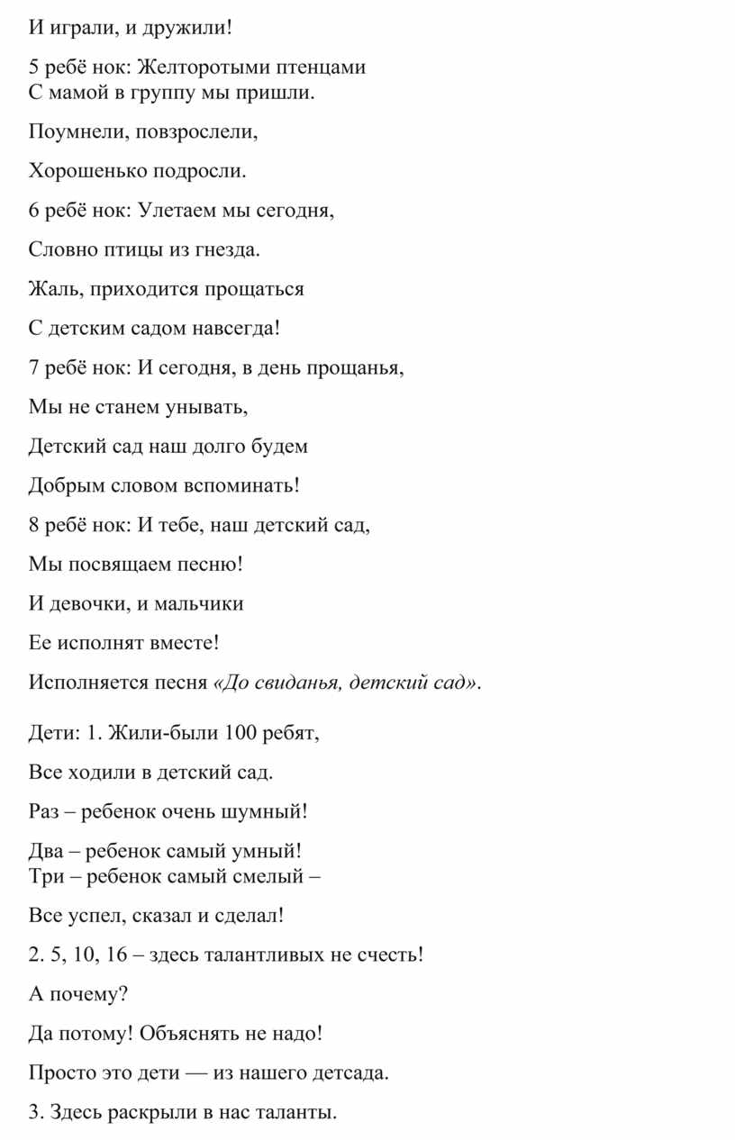 Исполняется песня «До свиданья, детский сад».