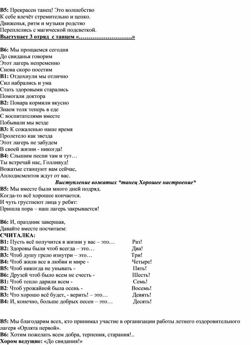 В6: И, праздник завершая,