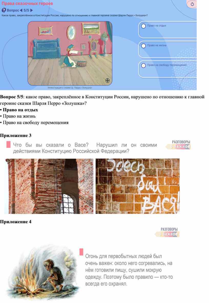 Вопрос 5/5: какое право, закреплённое в Конституции России, нарушено по отношению к главной героине сказки Шарля Перро «Золушка»?