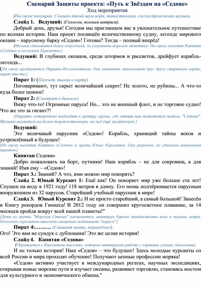Сценарий Защиты проекта: «Путь к Звёздам на «Седове»