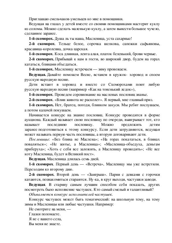 Сценарий праздника на Масленицу для школьников