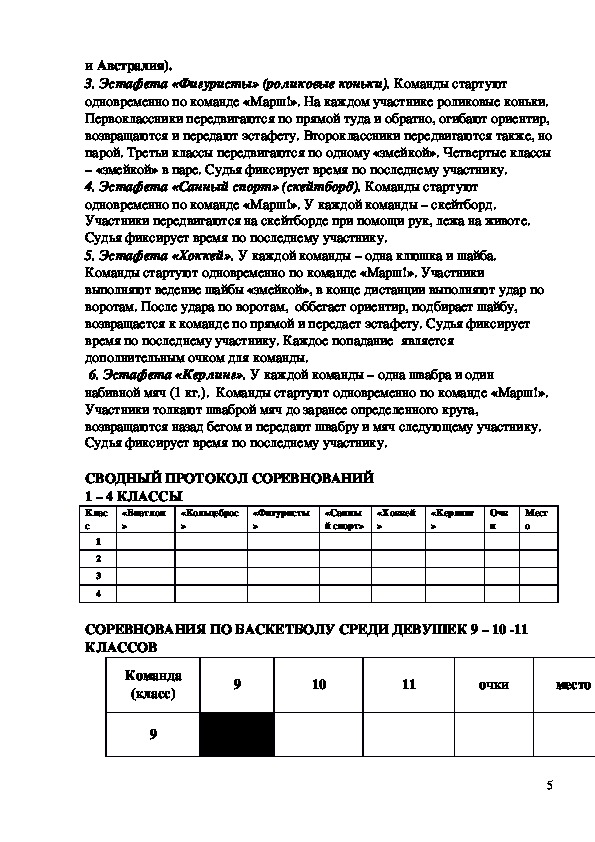 СОРЕВНОВАНИЯ ПО БАСКЕТБОЛУ СРЕДИ ДЕВУШЕК 9 – 10 11