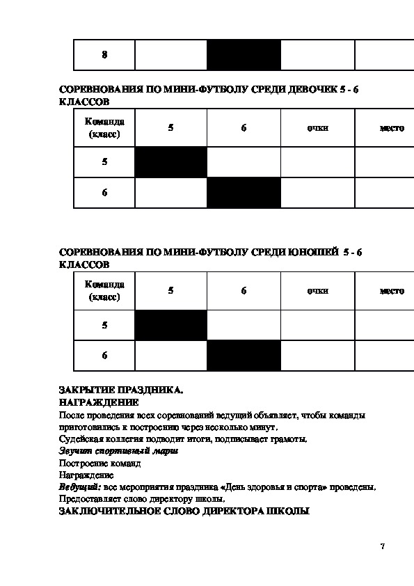 После проведения всех соревнований ведущий объявляет, чтобы команды